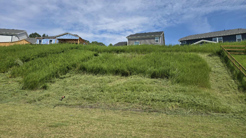 After years of overgrowth hiding a worsening erosion problem, this homeowner wanted a long-term solution that would stabilize the hillside and make the slope look clean and intentional. Razor Sharp Lawn & Landscape cleared the site, installed a reinforced erosion control system, and added new plantings designed to root deeply and protect the hillside while improving curb appeal.